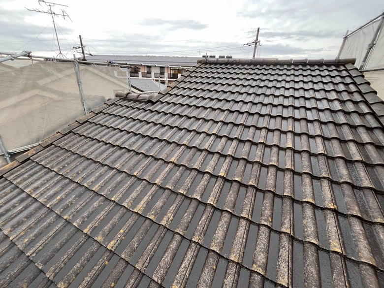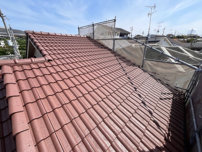 屋根材自体の損傷を防ぐ為に再度上塗りを施し、屋根材を保護しました。