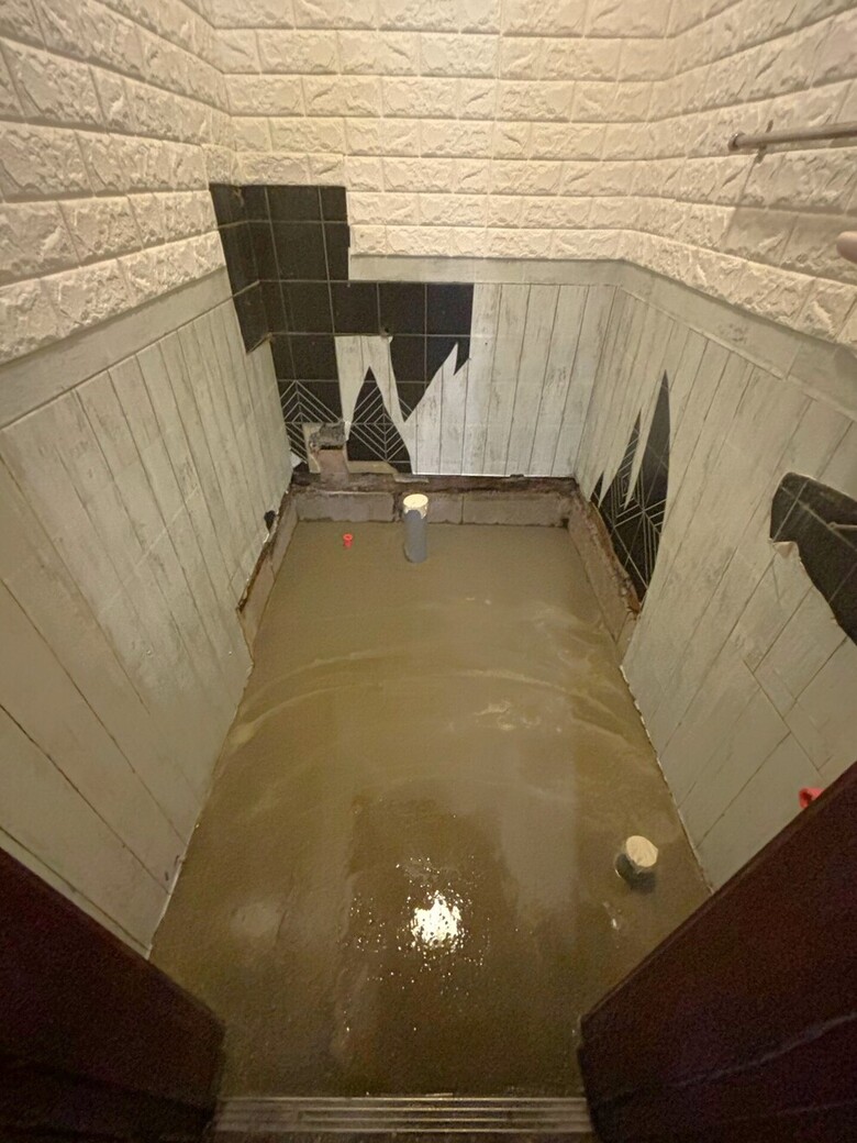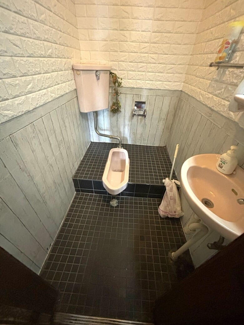 床をまっすぐにするため、和式トイレと床のタイルを除去