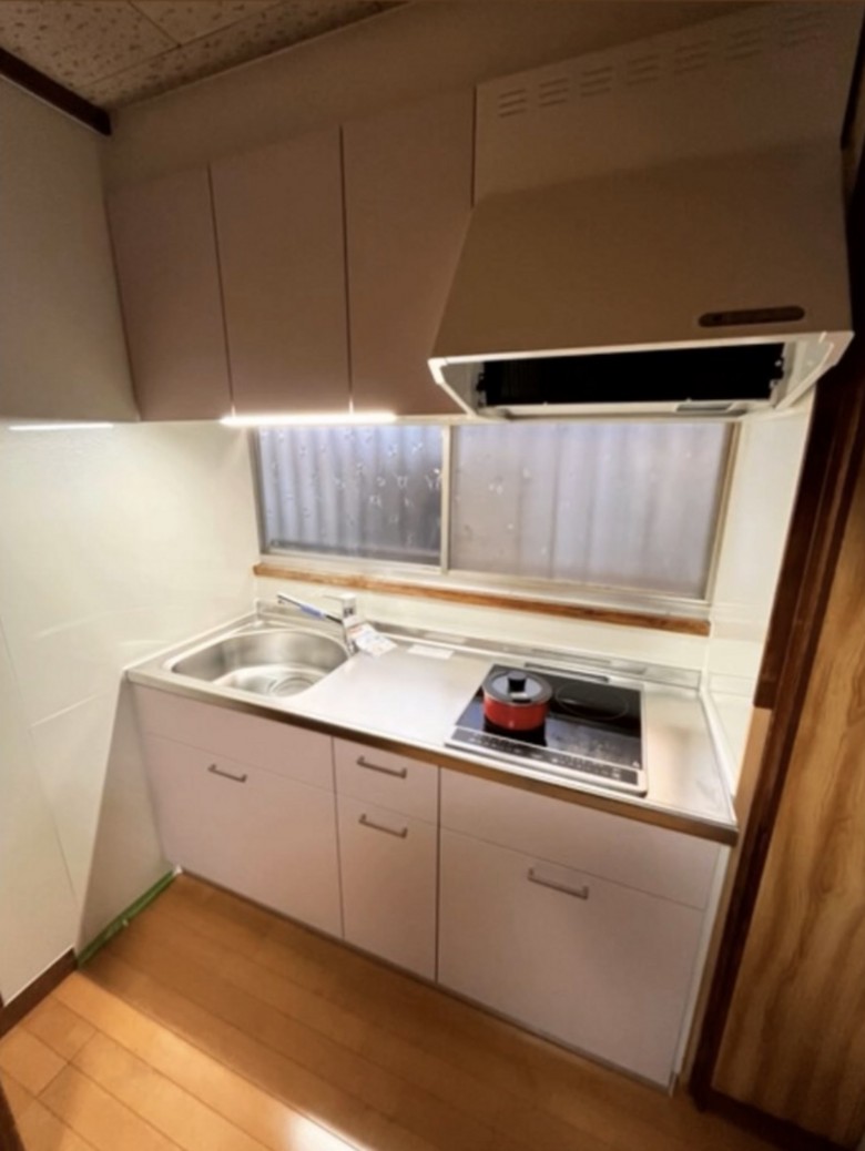 壁面はお手入れのしやすいキッチンパネルを採用し、コンロもIHに変更◎
