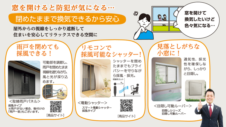 シャッターを閉めたままでもプライバシーを守りながら採風・採光◎
