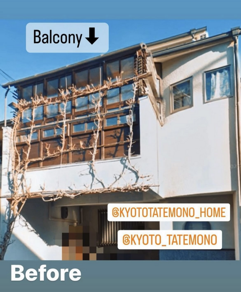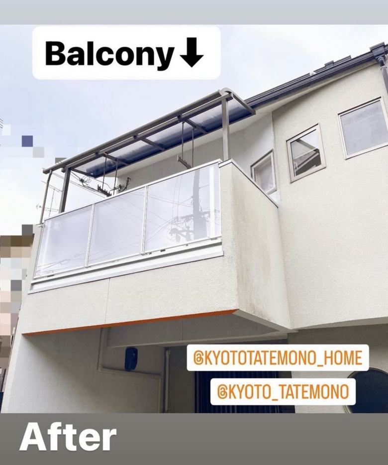 中古物件を購入され、ベランダに前オーナー様がDIYで作られた木製の囲いを撤去して手摺を設置したいというご要望でした。