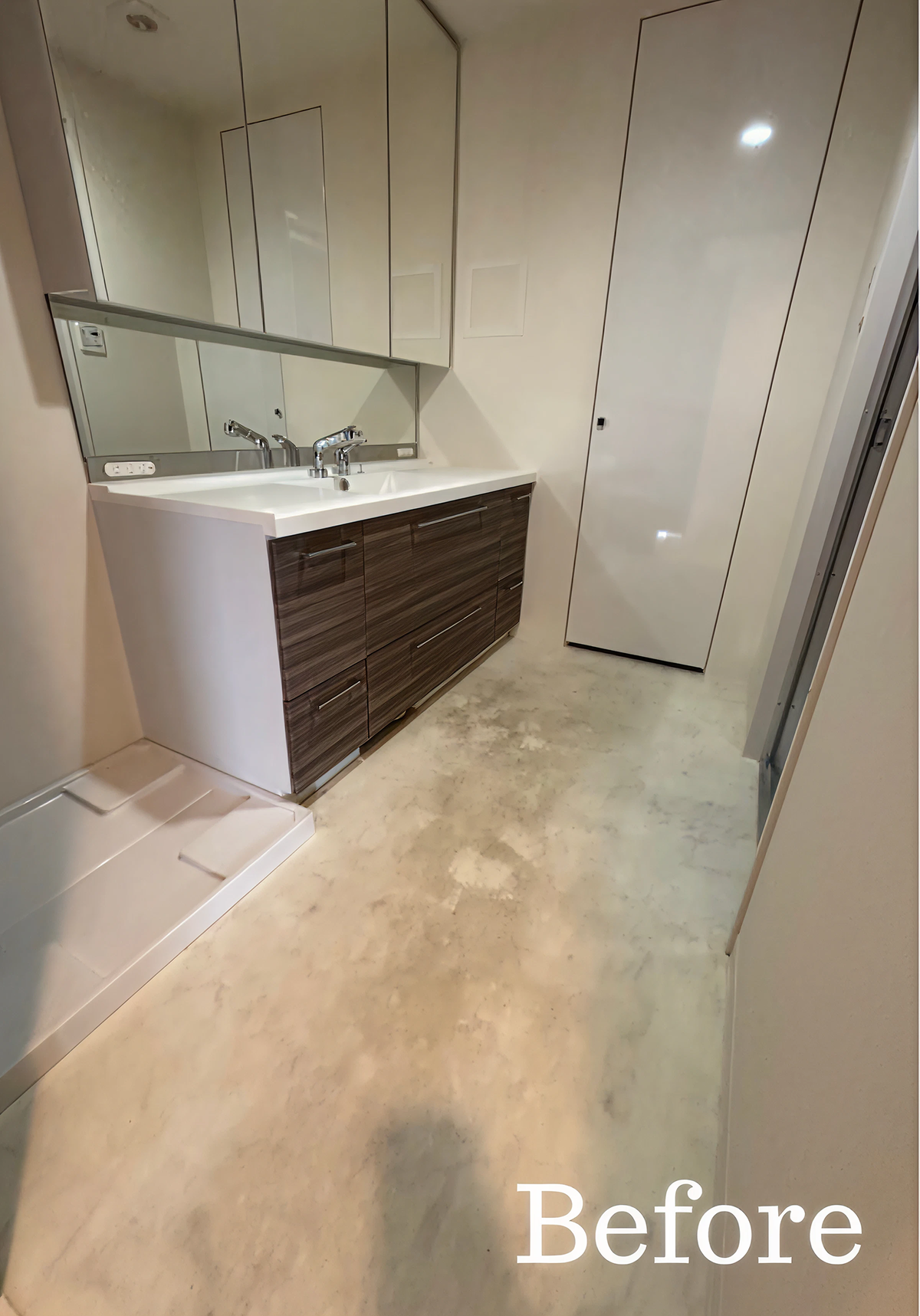 洗面所の床を、水に強いシートに貼り替え。