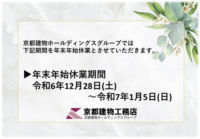 年末年始休業期間:2024年12月28日(土)~2025年1月5日(日)